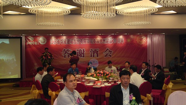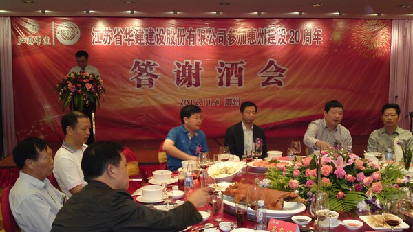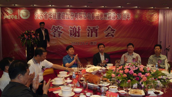 11月4日,公司在惠州凱賓斯基酒店王子飯店隆重召開參加惠州建設(shè)20周年慶典暨答謝酒會(huì),公司副董事長、總經(jīng)理宗有農(nóng)主持酒會(huì)并作開場致辭。惠州市有關(guān)政府部門、部分合作方企業(yè)的負(fù)責(zé)人,華建聯(lián)盟成員單位負(fù)責(zé)人,公司董事、監(jiān)事和高管等130余人出席慶典?;葜莨究偨?jīng)理華恒榮介紹了公司參加惠州建設(shè)20年的有關(guān)情況?;葜菔泄ど搪?lián)主席、公司戰(zhàn)略合作伙伴恒宇實(shí)業(yè)集團(tuán)公司董事長楊滿芳代表合作方發(fā)言,惠州市住房和城鄉(xiāng)規(guī)劃建設(shè)局副局長陳訓(xùn)政代表政府主管部門致辭,分別對(duì)江蘇華建進(jìn)駐惠州施工、參加惠州建設(shè)20周年表示祝賀。公司董事長陸金龍代表公司總部對(duì)惠州市有關(guān)政府部門、相關(guān)合作方和社會(huì)各界人士給予公司的關(guān)心和支持表示誠摯的感謝,并表達(dá)了進(jìn)一步加大支持力度、加強(qiáng)戰(zhàn)略合作、加快科學(xué)發(fā)展的意愿。