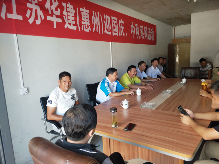 喜迎國慶、中秋,促進交流、互動 時間:2017-10-06 2646 10月3日,惠州公司機關全體在惠人員在總經理周群利的帶領下,前往公司直管項目部對節日堅守崗位的人員進行了慰問,并與他們進行了拓展、益智等互動活動。活動期間,周總與項目部人員進行了座談,并代表公司對節日堅守崗位的人員表示親切的慰問,詳細了解他們節日的工作、生活安排情況。同時要求項目部負責人要合理安排好大家的工作和生活,讓他們過一個喜慶、祥和的節日。會后,公司機關全體人員與項目部在崗人員開展了羽毛球、拔河、摜蛋、象棋等拓展、益智活動。通過這次活動,加強了交流,增加了了解,提升了凝聚力。