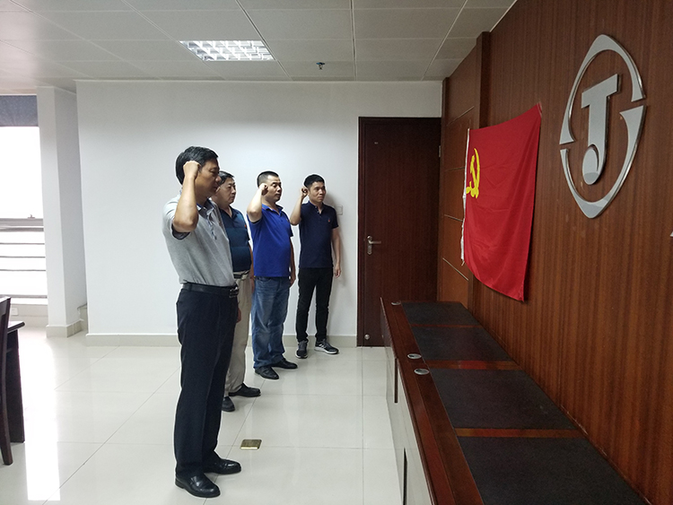活動中,全體黨員逐一誦讀了入黨申請書,分享了各自的入黨經歷,并結合“初心是什么、使命干什么、奮斗比什么”展開討論,回顧了申請入黨時的入黨初心和奮斗追求。隨后,黨總支書記周群利帶領全體黨員面對黨旗,鄭重宣誓,在莊嚴的氛圍中再一次接受黨組織的檢驗。