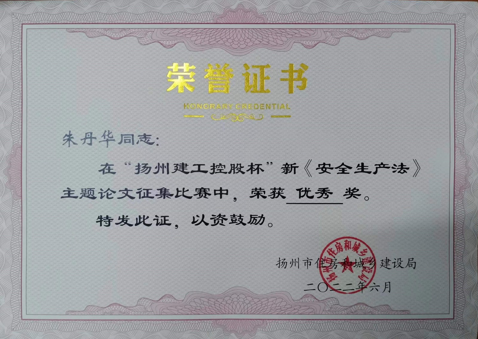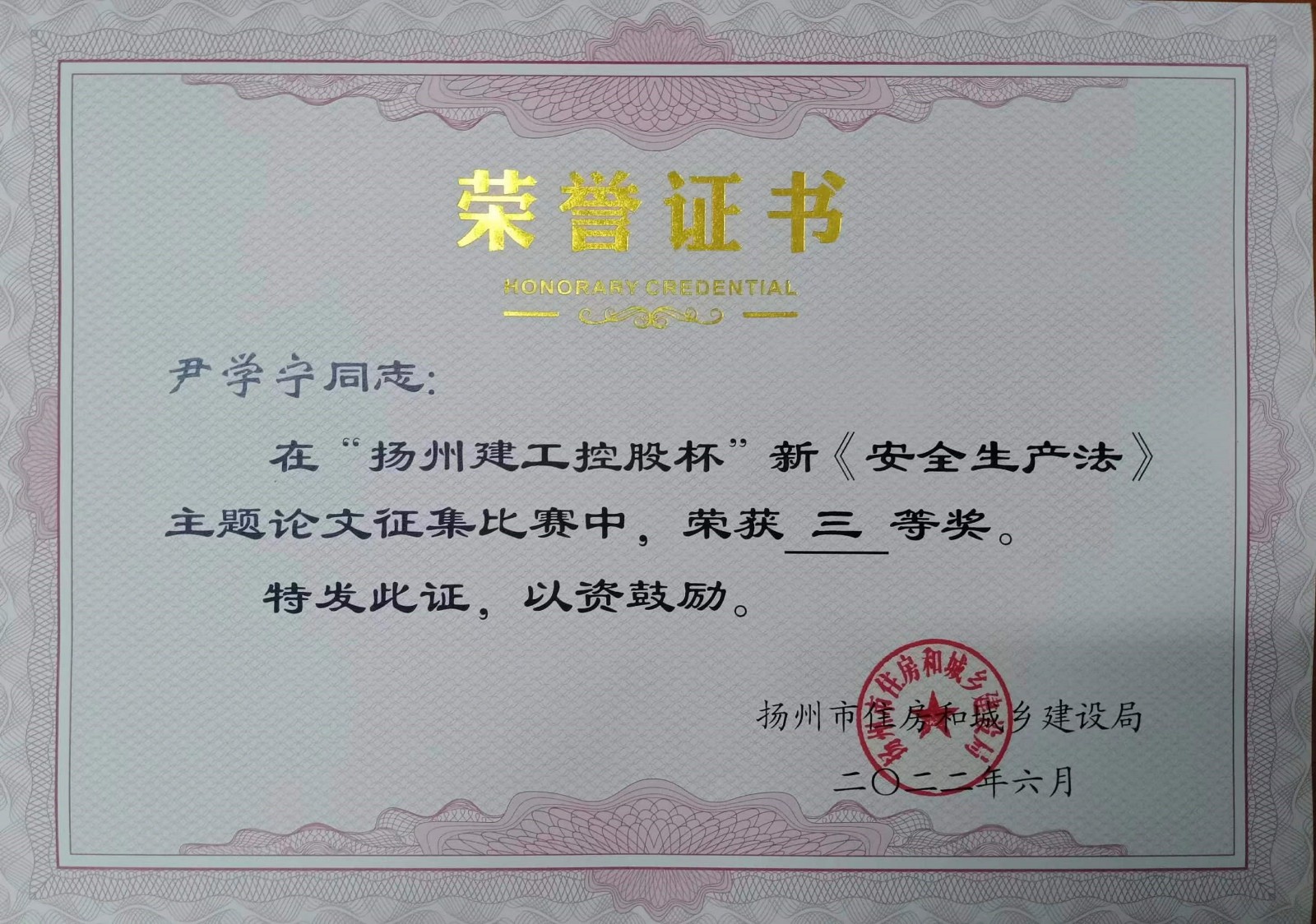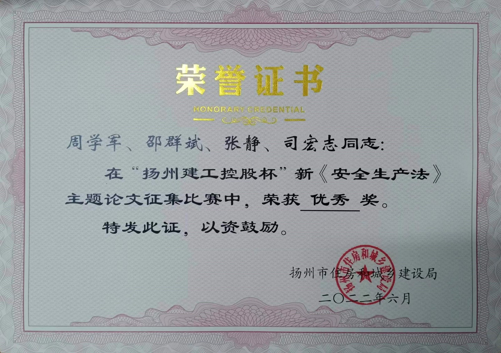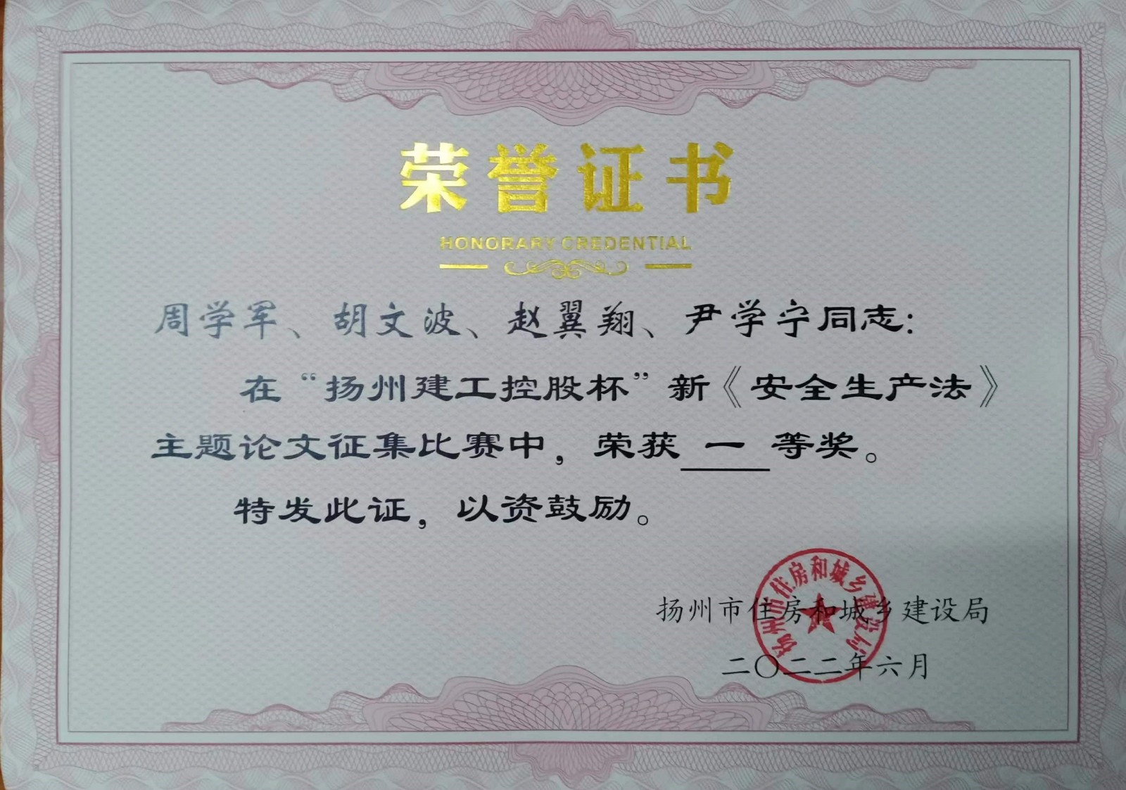 北京分公司4篇論文獲揚州市新《安全生產(chǎn)法》主題論文征文比賽獎項 時間:2022-07-16 3823 近日,從揚州市住房和城鄉(xiāng)建設(shè)局傳來喜訊,由北京公司投稿的4篇論文榮獲“揚州建工控股杯”新《安全生產(chǎn)法》主題論文征文比賽獎項,并獲頒證書,其中一等獎一項,三等獎一項,優(yōu)秀論文獎兩項。