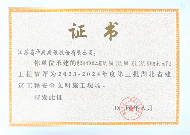 近日,公司承建的楚天都市潤園二期項目被湖北省建設工程質量安全協會評為“2023-2024年度第三批湖北省建筑工程安全文明施工現場”和“2024-2025年度第一批湖北省建筑結構優質工程”。
