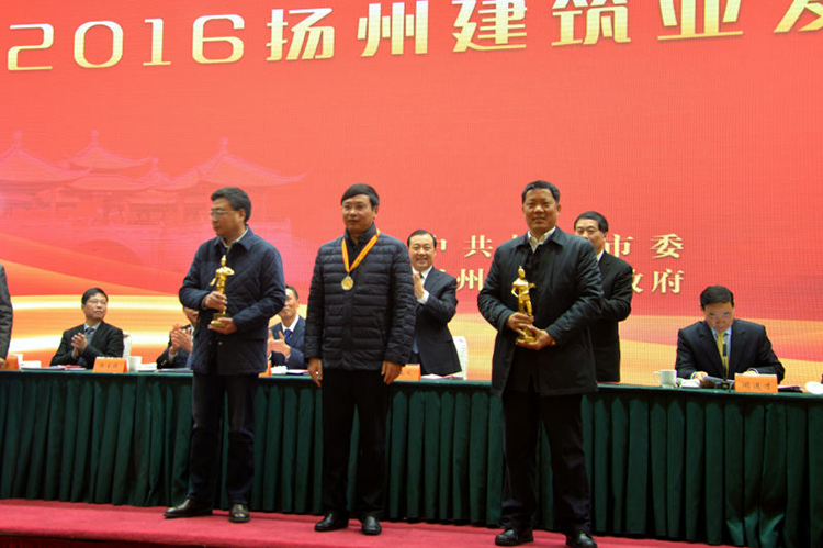 會議由聞道才副市長主持,與會人員首先觀看了“十二五”揚州建筑業(yè)發(fā)展專題片,聽取了朱民陽市長所做的工作報告。然后市政府對2015年全市建筑業(yè)目標(biāo)管理獎獲獎單位和全市建筑業(yè)先進(jìn)企業(yè)、先進(jìn)個人進(jìn)行了表彰。建工控股公司獲得唯一的2015年市政府建筑業(yè)目標(biāo)管理一等獎,位列各縣(市)區(qū)之上,市委書記謝正義親自向陸金龍董事長頒獎。2015年全市僅有的兩項魯班獎工程均由江蘇華建創(chuàng)造,宗有農(nóng)總經(jīng)理、吳士茂主席上臺領(lǐng)獎。此外,江蘇華建還有4名員工分別被市政府表彰為優(yōu)秀建造師、優(yōu)秀班組長。
