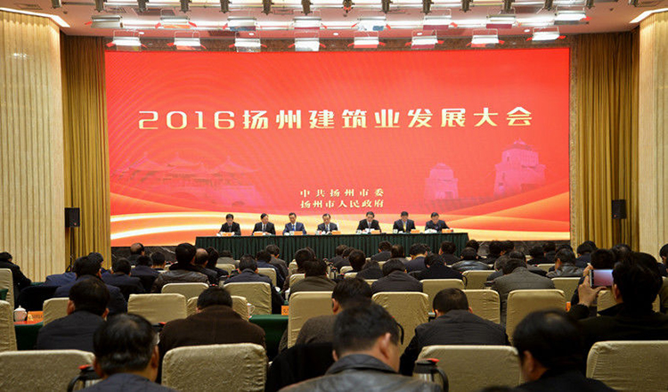 正月初七上班第一天,2016揚州建筑業(yè)發(fā)展大會在揚州會議中心召開,揚州市四套班子領(lǐng)導(dǎo)、政府有關(guān)部門和全市建筑業(yè)骨干企業(yè)負(fù)責(zé)人參加,陸金龍、宗有農(nóng)、吳士茂等公司領(lǐng)導(dǎo)代表建工控股和江蘇華建參加會議。