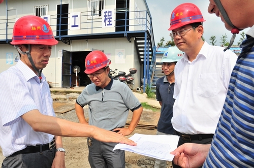 陳揚副市長視察建設大廈工地 時間:2011-08-12 5123 8月12日下午,揚州市政府副市長陳揚、市建設局局長楊正福一行前往江蘇華建代建的揚州建設大廈暨規劃展覽館、市民中心項目工地現場視察。揚州建工控股公司、江蘇華建董事長陸金龍陪同視察,并將工程施工進展情況向陳副市長作了簡要匯報。陳副市長對建設大廈總體施工進展表示滿意,并提出希望所有參建單位精心組織,科學管理,確保這一政府重點工程建設順利推進。公司領導程杰等一起陪同視察。