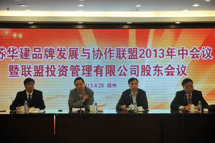 4月28日,江蘇華建品牌發(fā)展與協(xié)作聯(lián)盟2013年中會議暨聯(lián)盟投資管理有限公司股東會議在揚州召開,19個聯(lián)盟成員、4個聯(lián)盟觀察員單位負責(zé)人和聯(lián)盟投資管理公司全體股東及經(jīng)營層參加會議,江蘇華建副董事長、總經(jīng)理宗有農(nóng)主持會議,聯(lián)盟主席陸金龍作了講話,揚州市人民政府副市長聞道才、副秘書長侯承海出席會議。