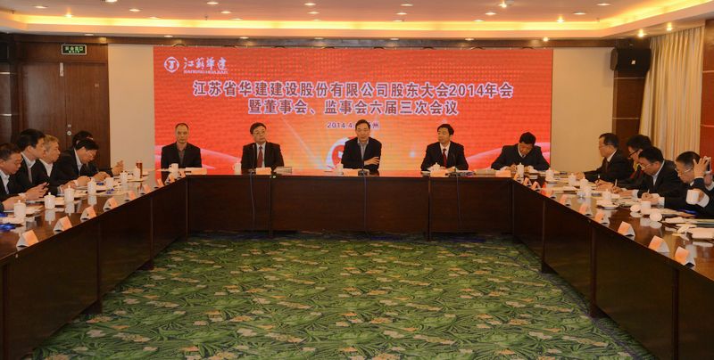48,公司股東大會2014年會暨董事會、監事會六屆三次會議在揚州召開。會議由陸金龍董事長主持,10名股東代表、13名董事、9名監事出席會議,公司高級管理人員、各分支機構和總部各部室負責人、公司律師團代表列席會議。
