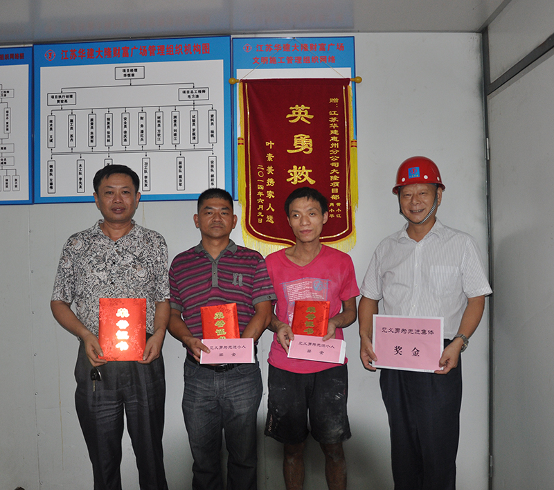 會上,惠州公司副總經(jīng)理、總工程師龐文榮、分工會主席王健代表分公司經(jīng)理室和工會向肖小平、黃小江兩位同志發(fā)放“見義勇為先進(jìn)個人”證書,向大隆財富廣場項(xiàng)目部發(fā)放“見義勇為先進(jìn)集體”證書,并給予一定數(shù)額的現(xiàn)金獎勵。同時號召大家向兩位同志學(xué)習(xí),學(xué)習(xí)他們舍己救人的崇高精神,學(xué)習(xí)他們樂于助人的高尚品德,為樹立公司良好精神面貌、傳遞社會正能量做出新的貢獻(xiàn)。