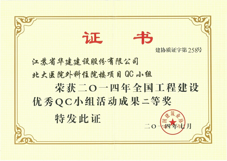 公司兩項目榮獲2014年中建協優秀QC成果獎 時間:2014-07-23 4513 近日,公司推薦的兩項QC成果在中國建筑業協會舉辦的2014年全國工程建設優秀QC小組活動成果交流會上榮獲一、二等獎,分別是北京公司的投資服務中心項目QC小組《提高插接式一體化節能鋁板幕墻安裝合格率》和深圳公司的北大醫院外科住院樓項目QC小組《提高外墻砂膠仿瓷磚涂料施工質量合格率》。今年共有29個地區、17個行業(總公司)協會推薦申報的875個全國工程建設優秀QC小組活動成果參與交流發布。