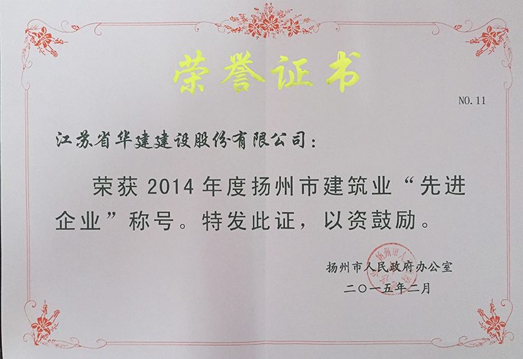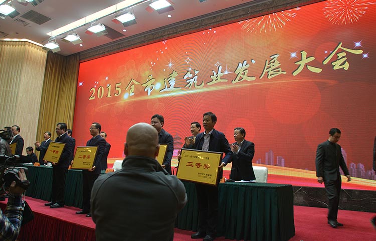 江蘇華建獲評揚州市建筑業先進企業 時間:2015-02-25 3496 2月25日,揚州市委、市政府召開全市建筑業大會,總結2014年全市建筑業工作并部署2015年工作。陸金龍董事長、宗有農總經理出席會議。會上江蘇華建被表彰為2014年度揚州市建筑業先進企業;建工控股公司獲市政府建筑業目標管理獎三等獎;宗有農總經理被授予2013-2014年度揚州市建筑功勛獎章,胡華兵等2人榮獲揚州市建筑業先進個人等榮譽稱號。