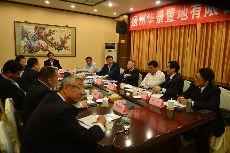 5月3日上午,揚州華景置地有限公司股東會在揚州怡園飯店召開。華建地產董事長程杰主持會議,江蘇華建董事長陸金龍、監事會主席吳士茂以及華景置地股東代表、經營層等出席會議。