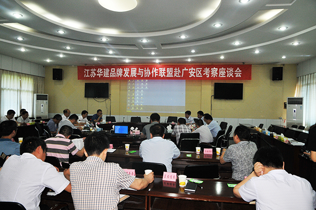 現(xiàn)場考察結(jié)束后,廣安區(qū)委書記文建平親自主持,在區(qū)政府七樓會(huì)議室舉行了“江蘇華建品牌發(fā)展與協(xié)作聯(lián)盟赴廣安區(qū)考察座談會(huì)”。調(diào)研組觀看了廣安區(qū)宣傳片及官盛新區(qū)概念規(guī)劃設(shè)計(jì)宣傳片,并聽取了吳榮勝區(qū)長對廣安的推介講話。華建聯(lián)盟常務(wù)負(fù)責(zé)人吳士茂在座談會(huì)的致辭中說,廣安是著名的英雄之鄉(xiāng),是改革開放總設(shè)計(jì)師鄧小平的故鄉(xiāng),江蘇華建近年來懷著對小平同志的崇敬之情,感佩于廣安領(lǐng)導(dǎo)和人民的熱情,積極參與廣安的經(jīng)濟(jì)建設(shè),貢獻(xiàn)自己的一份力量。這次特地邀請了華建聯(lián)盟部分成員單位的企業(yè)家到廣安學(xué)習(xí)調(diào)研,進(jìn)一步尋找項(xiàng)目合作的機(jī)會(huì),這是雙方加強(qiáng)深度合作、促進(jìn)全面發(fā)展的共同愿望。華建在廣安的項(xiàng)目開展非常順利,政企合作非常愉快,這也給了我們很大的信心和決心,希望能夠在廣安這片熱土上,發(fā)揮華建聯(lián)盟企業(yè)的特長和優(yōu)勢,尋求更多的合作空間,為廣安的經(jīng)濟(jì)建設(shè)和社會(huì)發(fā)展貢獻(xiàn)更大的力量,為小平同志的家鄉(xiāng)添磚加瓦,造福廣安黎民百姓。他期望通過當(dāng)天短暫的學(xué)習(xí)交流機(jī)會(huì)和今后進(jìn)一步的聯(lián)絡(luò)溝通,盡快找到雙方共同的合作需求,托起共同的事業(yè)。他還簡單介紹了華建聯(lián)盟的基本情況、經(jīng)營理念和運(yùn)作機(jī)制。江蘇華建常務(wù)副總、華建地產(chǎn)和聯(lián)盟投資董事長程杰,中機(jī)環(huán)建集團(tuán)董事長巫金林作為客商代表作了交流發(fā)言,表示通過調(diào)研考察,對廣安區(qū)特別是官盛新區(qū)的未來發(fā)展感到很振奮,進(jìn)一步堅(jiān)定了搞好現(xiàn)有項(xiàng)目的決心和加大投資的信心。文建平書記在最后的講話中高度評價(jià)江蘇華建在廣安項(xiàng)目上的建設(shè)投入力度,認(rèn)為華建領(lǐng)導(dǎo)重視,工程進(jìn)度快、質(zhì)量好,提升了廣安的城市形象。他希望在已經(jīng)形成的良好合作基礎(chǔ)上,與華建、華建聯(lián)盟進(jìn)一步加強(qiáng)對接,架起深度合作的橋梁,在房地產(chǎn)開發(fā)、都市產(chǎn)業(yè)、工業(yè)地產(chǎn)、總部經(jīng)濟(jì)等方面尋求更多合作機(jī)會(huì),實(shí)現(xiàn)雙贏。