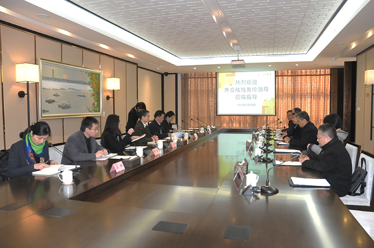 2月25日上午,國家外交部外事管理司廖力強司長、中央外辦外管局宋軍處長等一行5人,在省外辦副主任張松平、揚州市副市長汪志堅、市外辦副主任徐靜等陪同下,到江蘇華建開展外事工作服務(wù)企業(yè)發(fā)展專題調(diào)研,公司領(lǐng)導陸金龍、陳榮春、程杰、陸俊等一同接待。
