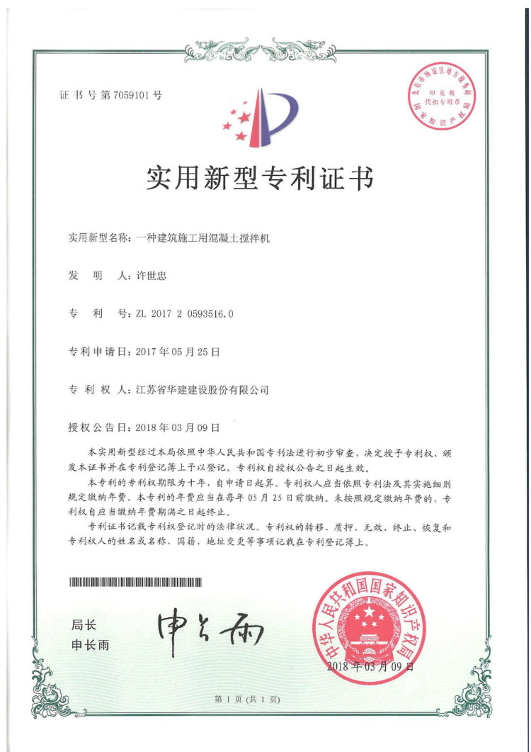 日前,從國(guó)家知識(shí)產(chǎn)權(quán)局傳來喜訊,江蘇華建發(fā)布的《一種用于砌體結(jié)構(gòu)墻體后開洞的夾緊梁裝置及其施工方法》獲得發(fā)明專利授權(quán)(專利號(hào):ZL201610262053.X),《一種建筑板材角磨機(jī)》(專利號(hào):ZL201720592798.2)、《一種建筑施工用鋼筋切斷機(jī)》(專利號(hào):ZL201720593659.1)、《一種建筑施工用混凝土攪拌機(jī)》(專利號(hào):ZL201720593516.0)獲得實(shí)用新型專利授權(quán)。