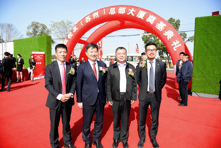 王宏董事長應邀出席中歐校友(蘇州)總部大樓奠基典禮 時間:2018-10-29 4396 10月27日,中歐校友(蘇州)總部大廈奠基典禮在蘇州工業園區隆重舉行,江蘇華建董事長王宏應邀出席。奠基儀式開始前,王宏董事長與中歐校友總會會長、中城聯盟輪值主席、朗詩集團董事局主席田明親切交談。王董事長對江蘇華建被選為總包單位參與大廈建設表示很榮幸,表態將以“魯班獎”標準抓好項目施工,努力打造成精品工程、標志工程、形象工程,為中歐校友會的發展盡心、盡力。田會長感謝江蘇華建對大廈建設的大力支持,希冀雙方的合作更加廣泛、更加深入。江蘇華建副總經理、上海區域公司總經理楊杰一同出席。