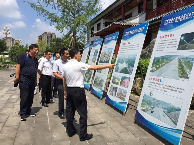 觀摩團(tuán)一行參觀了公司承建施工的岳池東城明珠、錦繡新城、絲綢路、土門(mén)路、龍藏大道和龍湖等項(xiàng)目,并通過(guò)展板講解形式詳細(xì)了解岳池PPP項(xiàng)目和廣安官盛新區(qū)BT 項(xiàng)目建設(shè)情況。觀摩團(tuán)對(duì)江蘇華建在廣安取得的成績(jī)表示震撼,對(duì)公司在廣安打造企業(yè)品牌和宣傳企業(yè)形象作出的努力表示充分肯定。