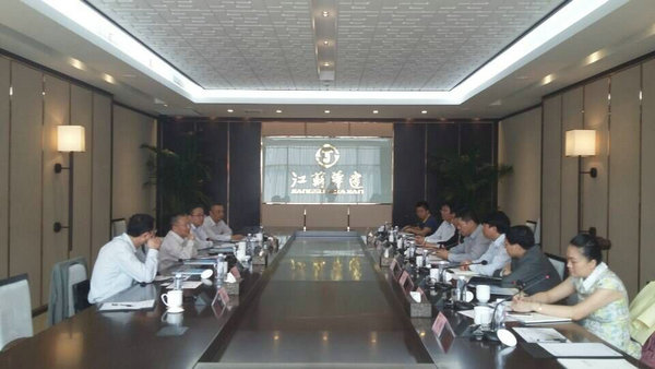 海建集團(tuán)總裁吳亞春一行赴華建總部考察交流 時(shí)間:2015-10-19 4073 10月18日上午,海南省建設(shè)集團(tuán)有限公司總裁吳亞春一行赴公司總部考察交流,公司常務(wù)副總程杰、海南公司副總高家馴及相關(guān)部門負(fù)責(zé)人參加接待交流。交流會(huì)上,程總介紹了公司的發(fā)展歷程和基本情況,雙方就蘇瓊兩地建筑施工企業(yè)發(fā)展、用人機(jī)制、分配機(jī)制和管理理念等方面分享各自的經(jīng)驗(yàn)與不足,并就尋求深度合作交流了意向,整個(gè)交流會(huì)氣氛活躍,雙方都感到受益匪淺。
