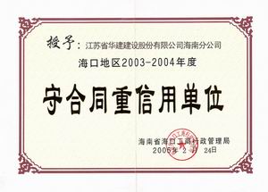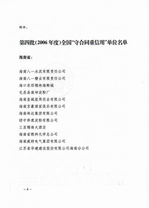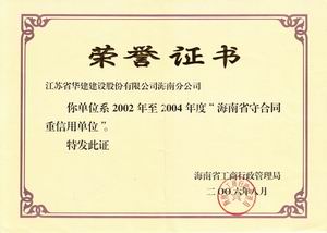 企業(yè)誠信榮譽 時間:2019-01-01 8716 2001-2002年度海口市守合同重信用 2003-2004年度海口市守合同重信用 2005-2006年度海口市守合同重信用 2002-2004年度海南省守合同重信用 2006年度全國守合同重信用1 2006年度全國守合同重信用2 2006年度全國守合同重信用3 2006年度全國守合同重信用4 2012年度海南省守合同重信用