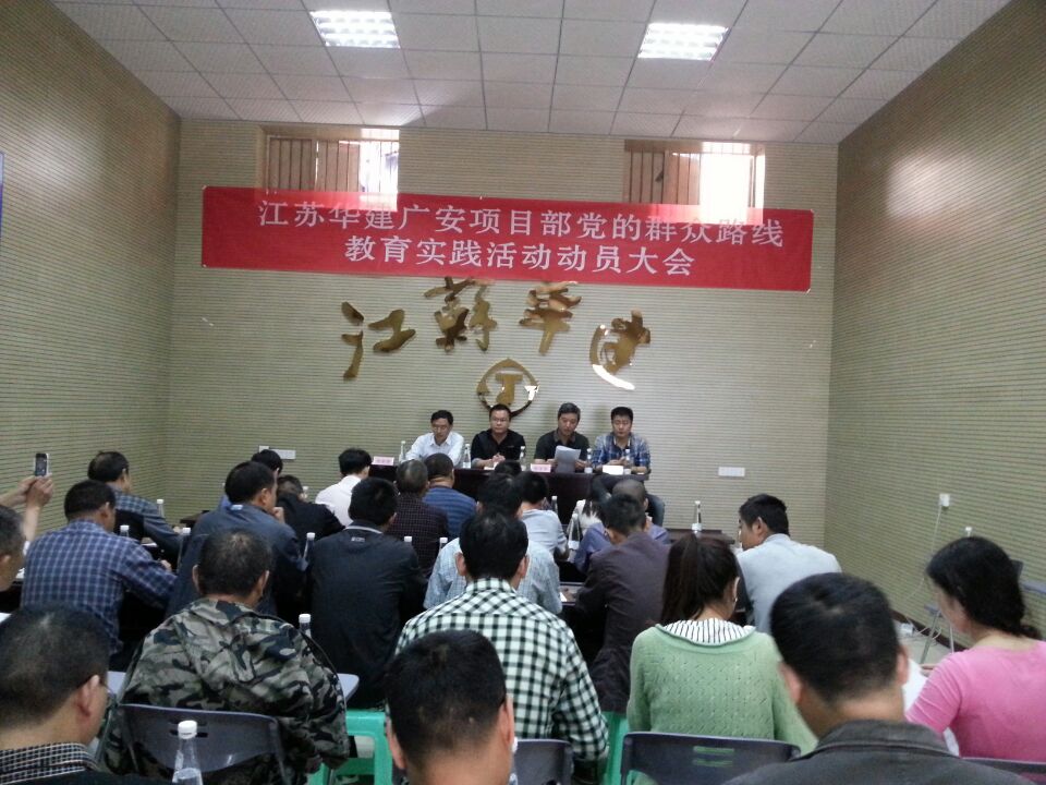 廣安官盛新區建設項目部黨小組召開黨的群眾路線教育實踐活動動員大會 時間:2014-04-17 4872 2014年4月16日,江蘇華建四川廣安官盛新區基礎設施暨美好家園建設項目部黨小組召開黨的群眾路線教育實踐活動動員大會。項目部所有黨員及各重要崗位管理人員共40余人參加會議。會議由珠海區域公司副總經理嚴正濤主持。珠海區域公司副總經理、總工程師周學軍在會上傳達了上級黨委關于深入開展黨的群眾路線教育實踐活動的實施方案和總的要求。珠海區域公司辦公室相關人員向與會者詳細介紹了本次活動所著力反對的“四風”的主要表現形式。官盛鎮黨委副書記馬江林參加會議,并對黨小組相關活動的開展提出了具體要求和指導意見。