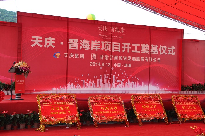 在開工奠基儀式上,天慶集團董事長韓慶發表了熱情洋溢的致辭,他簡要介紹了天慶集團和甘肅晉商投資發展股份有限公司的相關情況,表示將以天慶·晉海岸項目為依托,全力進軍珠海市場,為珠海房地產市場開發貢獻自己的綿薄之力。