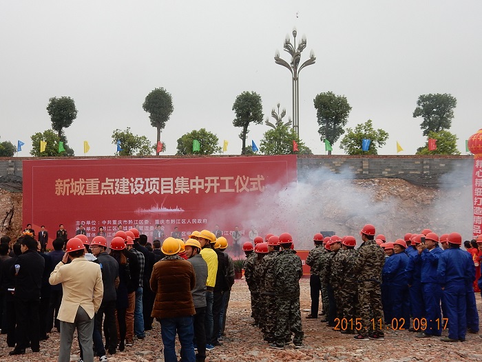 11月2日上午9:00,重慶黔江新城重點建設項目集中開工儀式在我公司承建的黔江區(qū)學府花苑項目現(xiàn)場隆重舉行。黔江區(qū)委書記余長明、區(qū)長徐江、人大主任梁正華、政協(xié)主席秦代書率四套班子成員和項目業(yè)主、施工方、監(jiān)理方代表等共同出席儀式并為項目培土奠基。