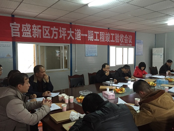 12月11日上午,廣安項(xiàng)目方坪大道一期竣工驗(yàn)收會(huì)在項(xiàng)目現(xiàn)場(chǎng)會(huì)議室舉行。廣安區(qū)人大主任蔣成文、區(qū)委常委李榮盛、廣安區(qū)住建局副局長(zhǎng)周春蘭,財(cái)政局、質(zhì)監(jiān)站相關(guān)領(lǐng)導(dǎo)和廣安項(xiàng)目指揮部各職能部門(mén)相關(guān)同志等出席驗(yàn)收會(huì)。