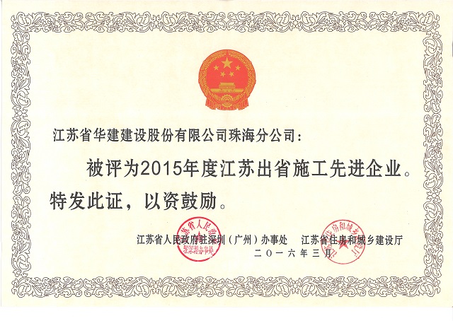 公司被評為“2015年度江蘇出省施工先進(jìn)企業(yè)”