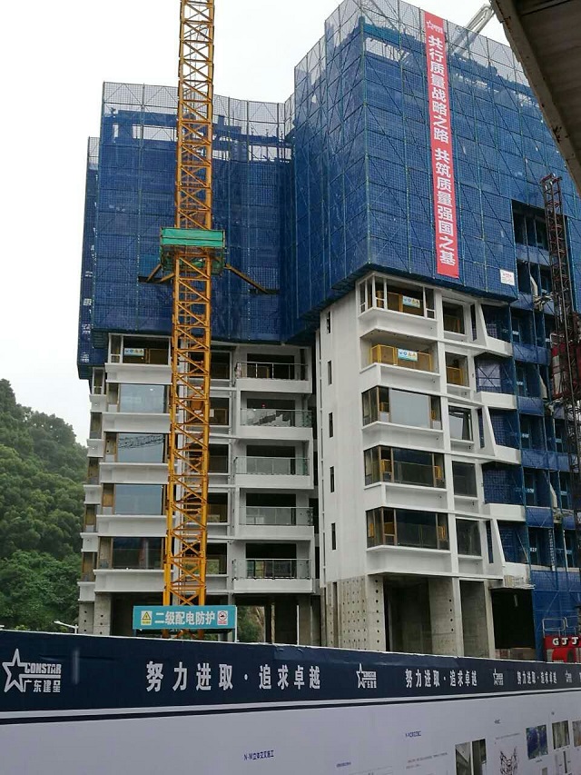 該工程現場采用了鋁模技術、預制樓梯整體吊裝技術、液壓爬升布料機技術、附著式全鋼自爬升架技術、ACC蒸壓加氣混凝土墻板安裝技術、泡沫混凝土填充墻現澆墻體技術、XPS復合保溫板施工技術等多種新技術,并且在現場制作了大量實物樣板。