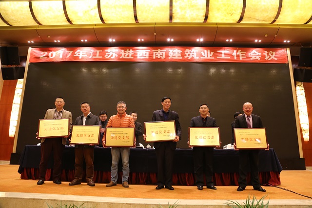 在江蘇商會組織召開江蘇出省建筑業企業西南地區黨委會會議。江蘇省建筑工程管理局副局長陳晨、江蘇省住建廳建筑市場監管處處長范信芳、江蘇省住建廳質監站站長曹春光、重慶市住建委建管處處長夏太風、重慶市住建委行政審批中心主任吳廣等參加會議。會上,重慶分公司黨支部被江蘇省住建廳表彰為“2016年度江蘇進西南地區建筑施工先進黨支部”,田大浪、杜國圣同志被評為“2016年度江蘇出省施工優秀黨務工作者”。