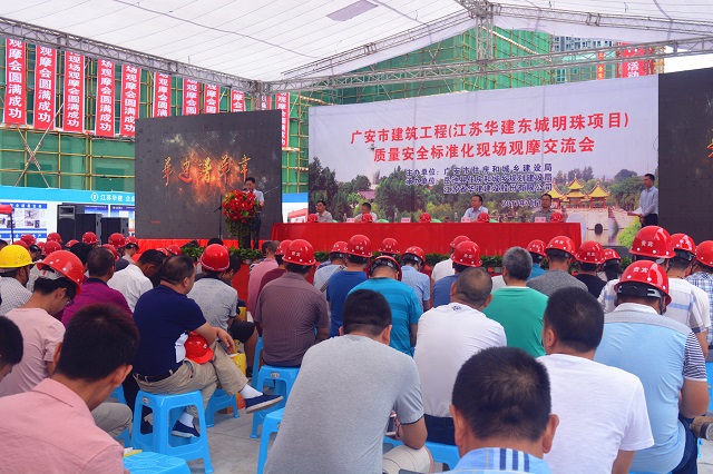 廣安市建筑工程質(zhì)量安全標(biāo)準(zhǔn)化施工現(xiàn)場觀摩會在東城明珠項目召開