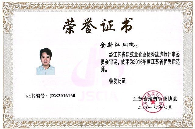 公司1位同志被授予“江蘇省優(yōu)秀建造師”榮譽(yù)稱號 時間:2017-12-12 3903 日前,江蘇省建筑行業(yè)協(xié)會下發(fā)了《關(guān)于2016年度江蘇省建筑業(yè)優(yōu)秀建造師的決定》,公司余新江同志位列榜單,榮獲表彰,被授予“江蘇省優(yōu)秀建造師”榮譽(yù)稱號。