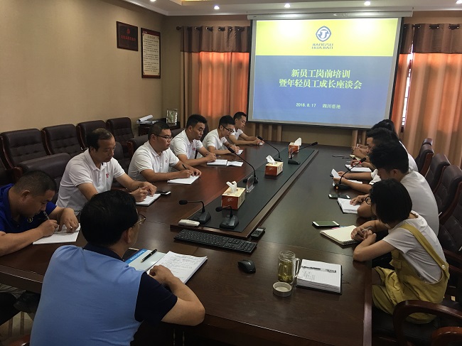 8月17日下午,重慶分公司在岳池會議室召開新員工崗前培訓暨年輕員工成長座談會,公司經營層和在岳年輕員工共14人參加了會議,會議由嚴正濤總經理主持。