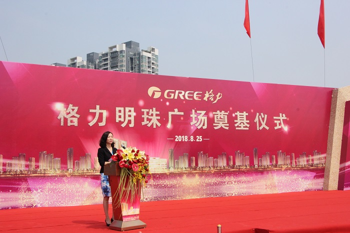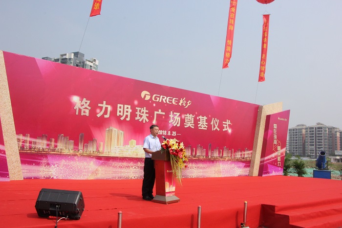 蘆曉鳳副市長代表珠海市政府對格力明珠廣場工程奠基表示熱烈祝賀并致辭:格力電器是中國制造的標桿品牌,是珠海實體經濟的重要支柱,長期以來為珠海經濟社會發展作出了重大貢獻。希望格力電器堅定不移地走創新發展道路,全面激發各類人才創新創造活力,進一步做強做優做大核心主業,搶占世界制高點、掌控技術話語權。珠海將積極實施“英才計劃”,為包括格力電器廣大員工在內的各類人才,提供更多保障和最優環境,真正讓各類人才在珠海留得下來、安得下心、干得成事。
