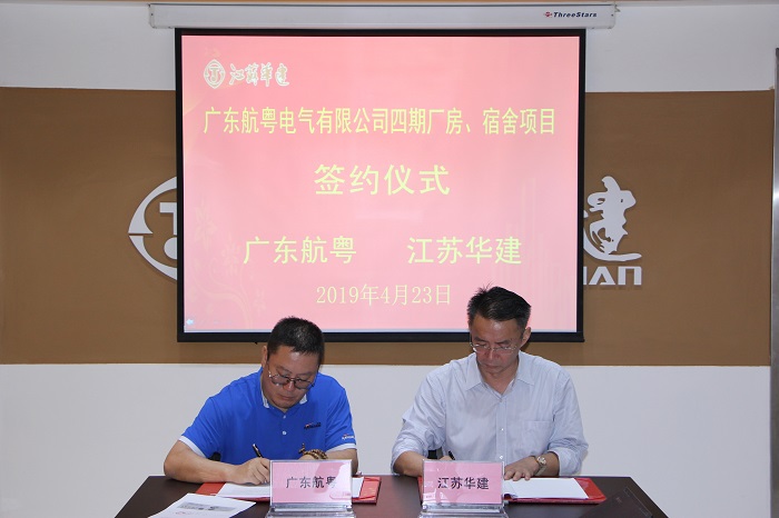 4月23日,公司舉行廣東航粵四期廠房項目簽約儀式。公司總經理呂方達、副總經理、總工程師周學軍、副總經理朱濤和廣東航粵電氣有限公司董事長楊建豐、總經理岳曉訪、董事長助理黃創群等參加簽約儀式。
