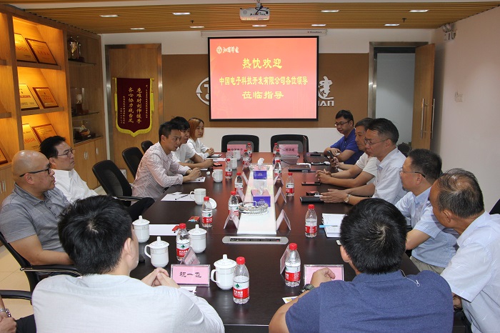 簡短會談后,在雙方代表的共同見證下,公司總經(jīng)理呂方達與中國電子科技開發(fā)有限公司副總經(jīng)理潘寧簽訂了項目《建設(shè)工程施工合同》。