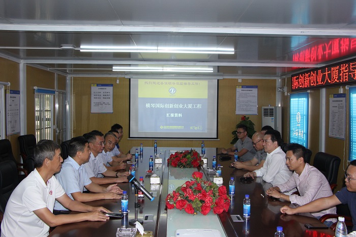 簽約儀式后,全體與會人員前往橫琴創(chuàng)新創(chuàng)業(yè)大廈項目現(xiàn)場,聽取了項目部關(guān)于項目概況、管理目標(biāo)、總體施工部署、項目進展情況的簡短匯報,雙方就項目工期節(jié)點、創(chuàng)優(yōu)目標(biāo)、團隊合作等進行了座談交流。