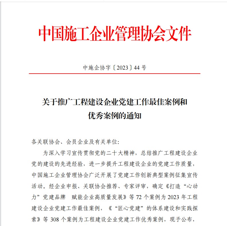 6月2日,中國施工管理企業(yè)協(xié)會發(fā)布2023年度全國工程建設(shè)企業(yè)黨建工作創(chuàng)新典型,江蘇華建申...