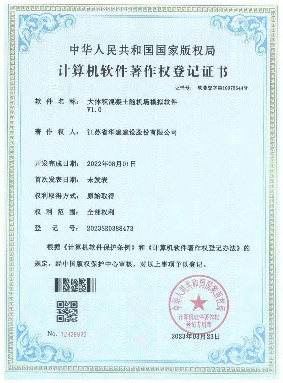 近日,國(guó)家版權(quán)局對(duì)江蘇華建自主研發(fā)的《大體積混凝土隨機(jī)場(chǎng)模擬軟件V1.0》軟件產(chǎn)品進(jìn)行了知...