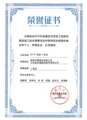 近日,從中國建筑業(yè)協(xié)會傳來喜訊,由江蘇華建揚州分公司總包承建的城建廣場項目榮獲2023年度...