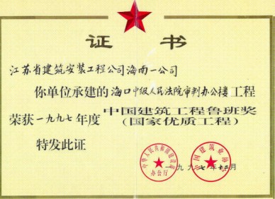 ??谑兄屑壢嗣穹ㄔ簩徟修k公樓位于??谑薪鹩盥?號,1995年4月竣工,1996年6月被評為海南省優(yōu)質(zhì)工程,并榮獲海南省優(yōu)秀建筑二等獎,1997年12月榮獲1997年度建筑工程魯班獎。