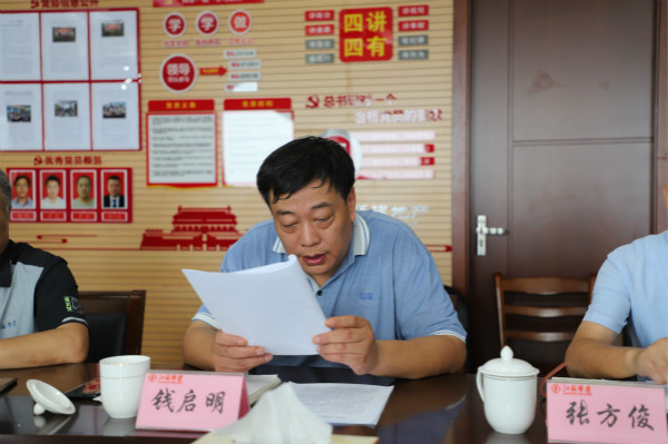 會上,錢啟明匯報了上半年公司三大攻堅戰、形式主義官僚主義專項整治、黨建和黨風廉政建設、企業領導人兼職整改、企業層級壓縮和企業混改推進等重要工作任務完成情況。揚州分公司就落實“兩個責任”,加強項目黨建和黨風廉政建設工作情況進行了匯報。