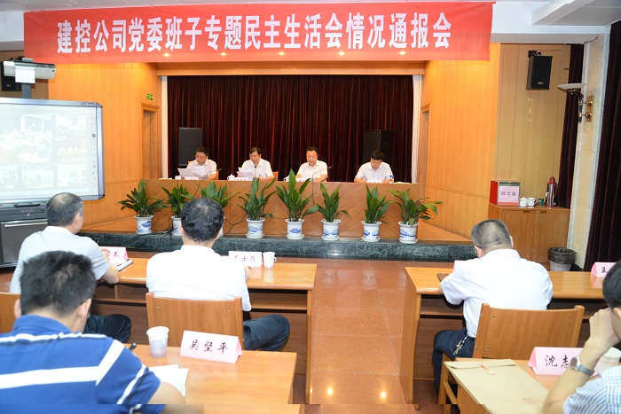 8月8日上午,按照市教育實踐活動領(lǐng)導(dǎo)小組辦公室的統(tǒng)一部署,公司黨委在后一樓會議室召開了建控公司黨委班子專題民主生活會情況通報會,市委第12督導(dǎo)組組長戴前良、副組長陳貴江和督導(dǎo)組成員吳堅平、沈志遠(yuǎn)、徐峰到會指導(dǎo)。黨委書記陸金龍主持會議,并對公司黨委班子專題民主生活會情況進(jìn)行通報。副書記宗有農(nóng)、吳士茂,黨委委員陳榮春、程杰、錢啟明、王宏到會。建控機(jī)關(guān)、公司總部中層以上人員、全體黨員;直屬單位黨組織主要負(fù)責(zé)人、分管負(fù)責(zé)人、黨務(wù)部門負(fù)責(zé)人;離退休黨員代表共57人參加會議。公司駐外各分支機(jī)構(gòu)中層以上人員、全體黨員以視頻形式收聽收看。
